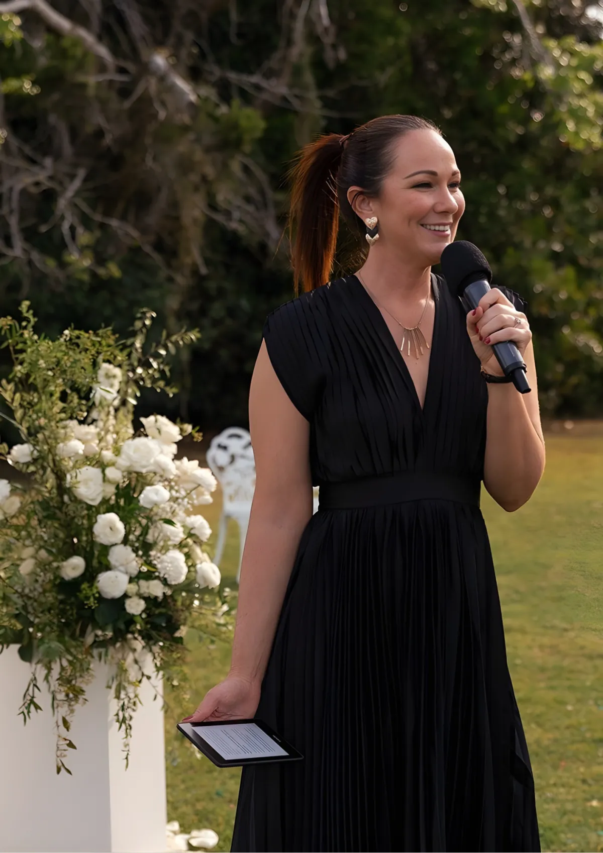 A celebrant who fixes veils, calms nerves, and is always one step ahead